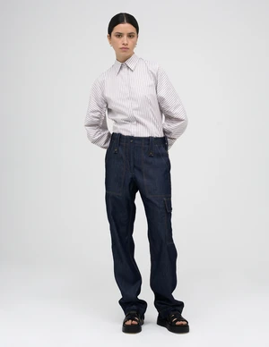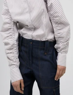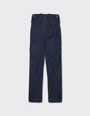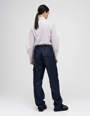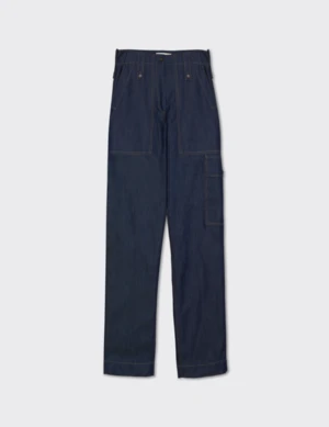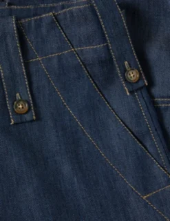 Loose-fit denim lyocell cargo pants from A Line. Two front patch pockets with contrast topstitching, a side pocket and a back pocket with button flap. Pair these with the matching denim shirt for a vintage-inspired set. Adjustable waist detail with straps and buckle.