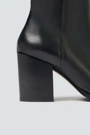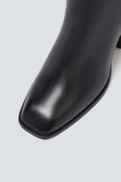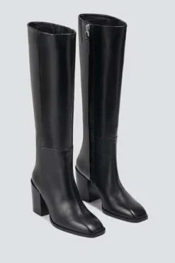 Black Teresa Boot from Aeyde. Sophisticated knee-high heeled boot. Square toe. Supple calf leather. Tactile suedes.