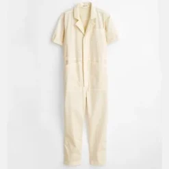 Alex Mill’s best-selling Standard Jumpsuit now with short, ready-to-roll sleeves. We love the utilitarian vibe on this one. Due to the nature of the garment dyeing process, slight variations in color should be expected.
