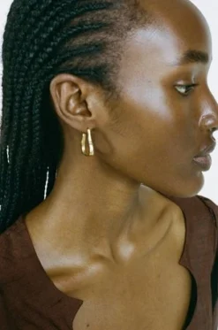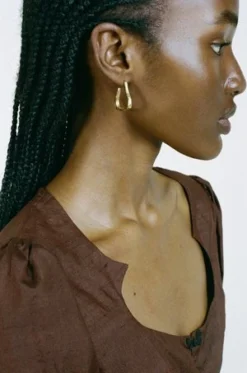 A pair of 24ct gold plated textured hoop earrings. Butterfly and post closure.