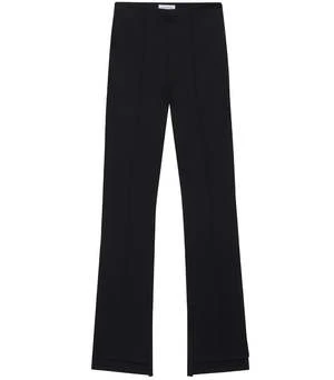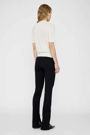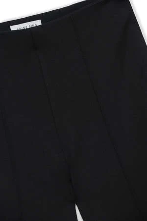 The Lex Pant in Black by Anine Bing is a sleek, high waisted pant crafted in their signature pont fabrication. The slightly flared silhouette features a unique step hem and pin-tuck detailing along the front.