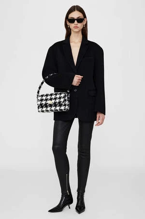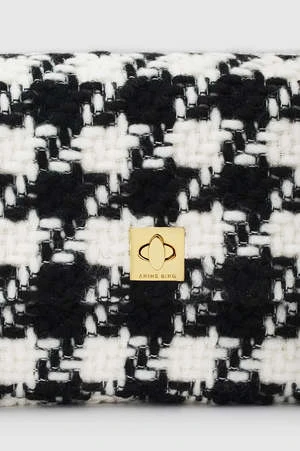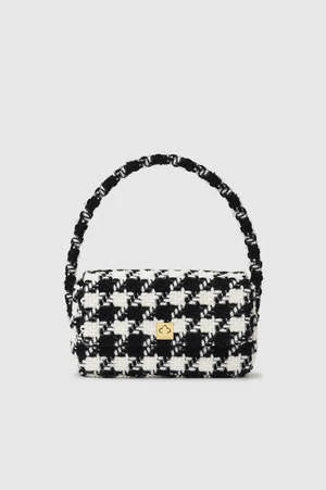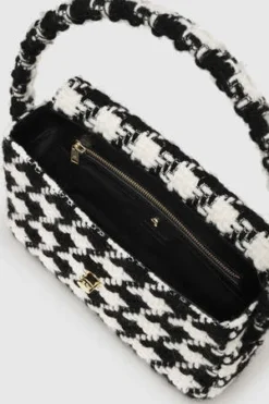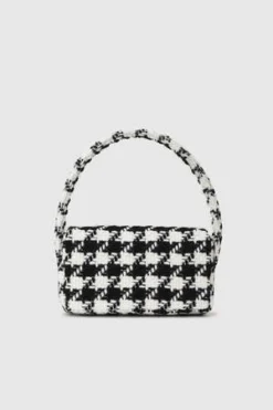 The best-selling Nico Bag, now available in a novelty wool blend featuring a large black and white houndstooth pattern. The Nico Bag features a ’90s-inspired baguette shape accented with a branded square turnlock in gold-tone hardware and a tubular handle for a snug under-the-shoulder fit. This everyday carryall includes a fully lined interior complete with an inner zip pocket for added storage.