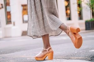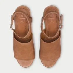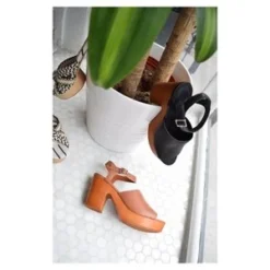 Leather platform sandal with buckle closure. Leather lining and memory foam cushioned insole. 1″ wooden platform with a 3.5 heel, rubber outsole. Imported.