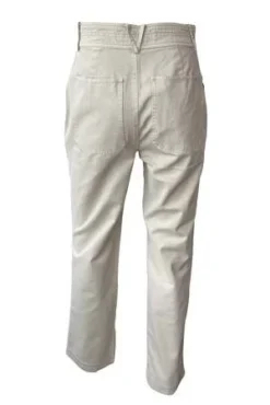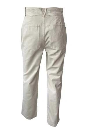 These pants from Apiece Apart feature a high rise with button closure and a straight leg.