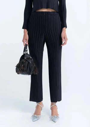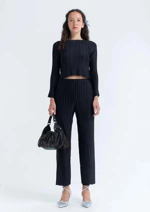 The Box Pleat Straight Pant by Arthur Apparel is a straight leg pant with small box pleat fabrication. Slightly cropped and finished with an elastic waistband.