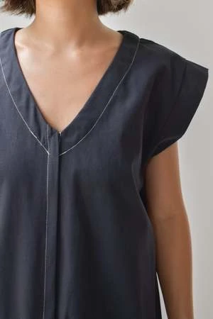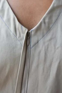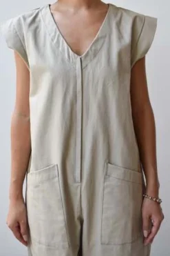 Sleeveless V-neck Jumper with side pockets and front zipper closure.