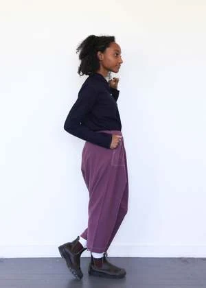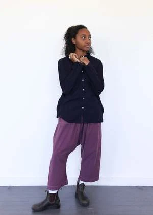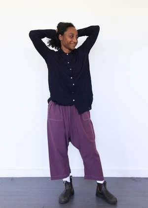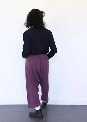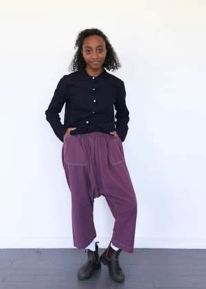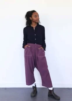 drop crotch and easy fit with cropped length; elastic waistband, front patch pockets