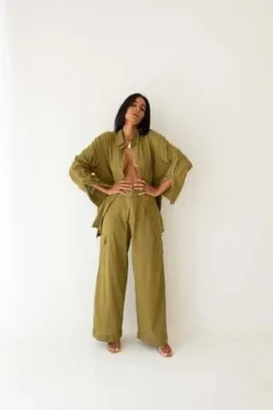 Lightweight trouser crafted from our cotton crinkle. Intended to wear from day to night. Styled with the