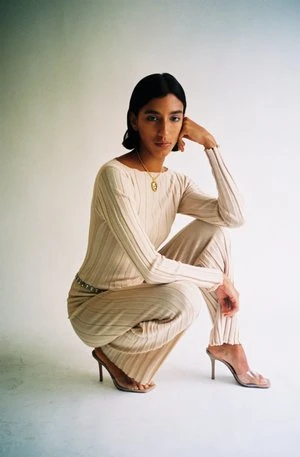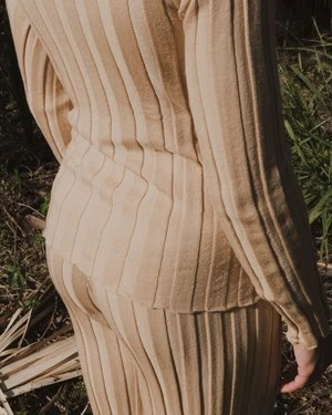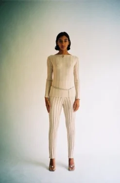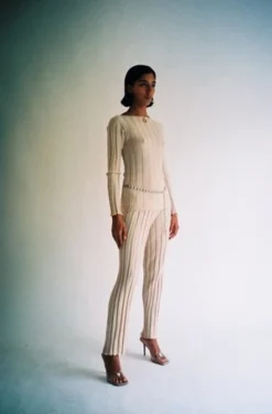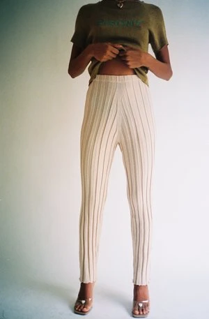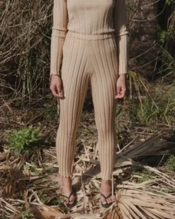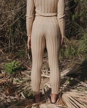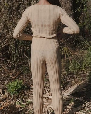 Wide ribbed knit pant. Elastic waistband. Soft and comfortable merino wool. Worn with the matching Adler Long Sleeve.