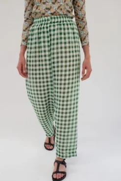 Lightweight semi-sheer high waisted pant, elastic waist, crazy comfortable. Loose drape fit. Model is wearing a small/medium. Total length 39″, Inseam 27″. Running true to size.