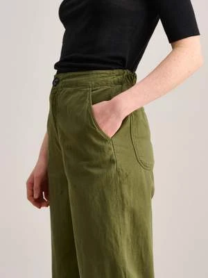 Our PASOP checks all the boxes to be the ultimate easy-does-it pair of pants this season. Relaxed cut with a front tailored like classic high rise pants but an elasticated waist in the back for comfort, ankle-length, and straight leg. Wear it as-is with a light sweatshirt and a pair of All-Stars or roll the cuffs to draw attention to your footwear. This kaki version will go with everything but we love to pair it with an ecru overshirt.