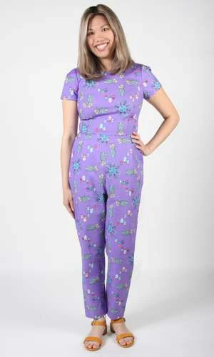 Auk is a fitted, flattering jumpsuit with front pockets, a short sleeve, and a back invisible zipper closure.