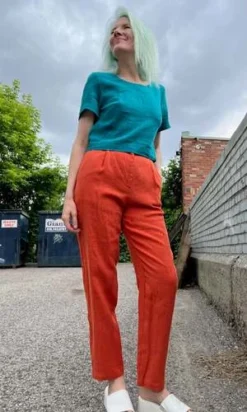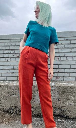 Chucklehead is a pleated pant with front pockets, belt loops, and a classic fly front. It’s made of a beautiful, pre-washed 100% linen, and closes with a button at the waist.