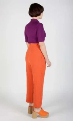 The inseam measures 29″, and you can hand or machine wash this pant on a delicate cycle in cold water and hang it to dry. Chucklehead is also available in Black, Navy, Teal, and Lilac. Bo is 5’4″ and wears our size 4. You can see our size chart here.