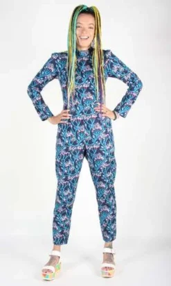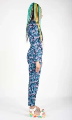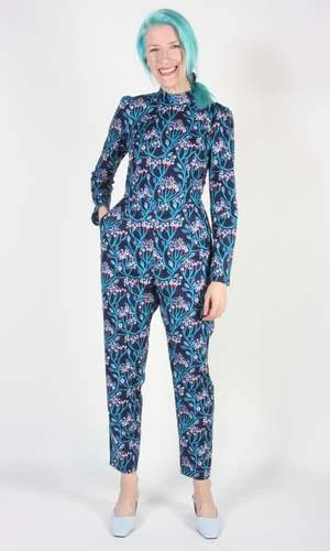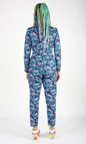 Geocoucou is an escalation of our printed jumpsuit, now in a FULL BODY version! This has become a staple Birds cut. Its surprisingly easy-to-wear, flattering, and it has pockets in the pants! It closes with a back invisible zipper.
