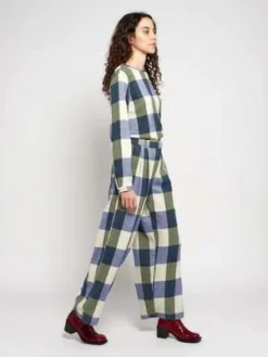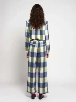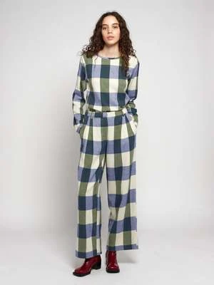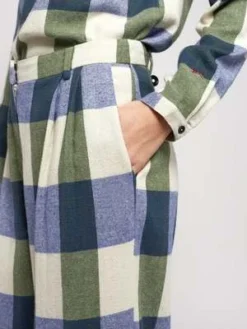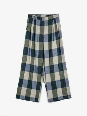 100% cotton navy blue trousers. Designed with regular crotch, front button fastening, front zip fastening, beltloop, long length and mid-rise. It has a wide leg fit. Made in India.