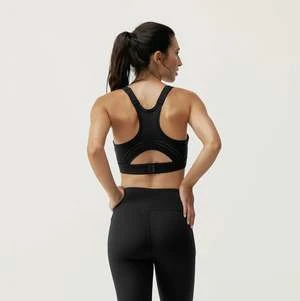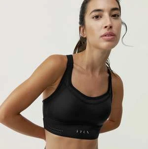 High support sports top. Contour Shape fabric with Performance technology. Adjustable shoulder straps with laser perforations for breathability and back closure. No pads, with ergonomic inner reinforcement for extra support.