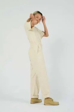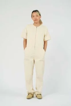 Made with 100% durable cotton canvas this jumpsuit features side pockets, zip front and a drawstring waist to adjust to your perfect size. Made in Canada