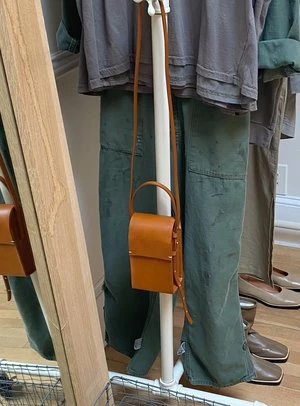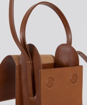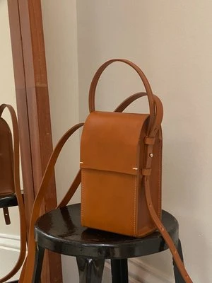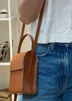 the cutest, small structural bag in chestnut vegetable tanned leather