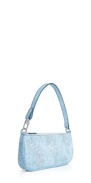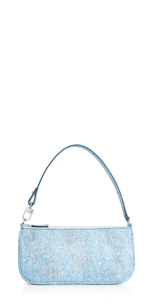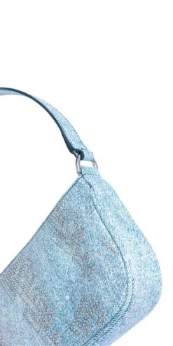 BY FARs definitive shoulder bag has a sleek, minimalist design with zip closure and metal hardware for a modern accent. The accessory is crafted in cowhide leather with a denim print and the BF logo motif embellishment in silver studs.