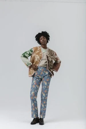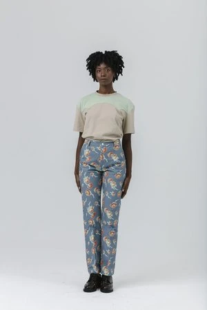 A slim fit pant that kicks out slightly at the hem made from our Yellow Rose printed canvas