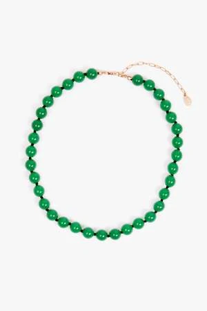 – Translucent glass beads on a knotted black thread