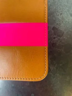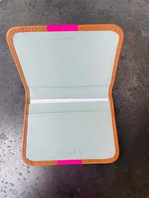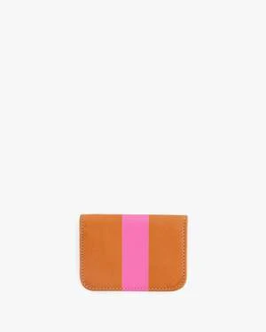 Clare V.Card Case – Natural Rustic/Neon Pink Stripe