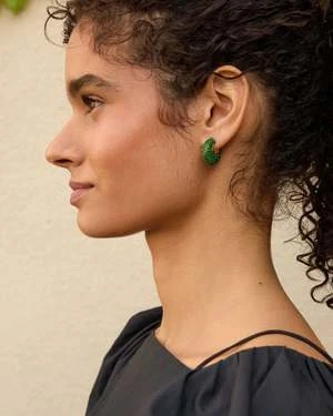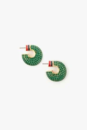 Pave and enamel chubby hoops, in a sparkling emerald. Hollowed interior make these comfortable for all-day wear.
