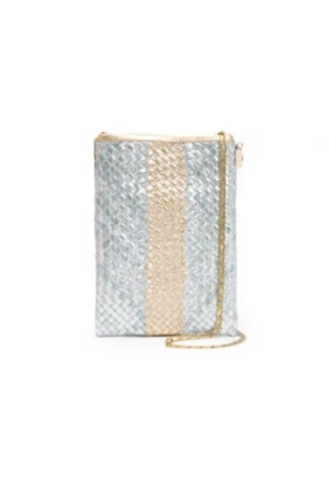 Clare V.’s everyday (& everywhere) phone bag. Fits your phone, small set of keys, small card case, & Air Pods. Detachable / interchangeable crossbody chain strap and woven leather.