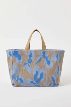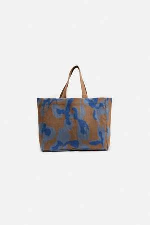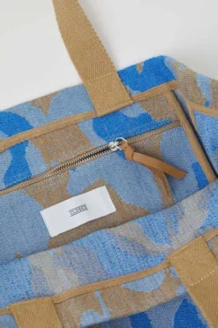 Bag with allover jacquard pattern made of strong and robust cotton fabric with plain-coloured ripsband handles. Inside with large zip pocket and Closed badge.