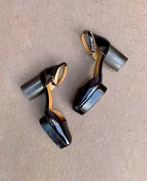 We go high with the Tower platform heel. This two piece ankle strap pump is open on the sides for dramatic flair. Ankle strap buckle closure. The Tower runs true to size. See our size guide to find your Coclico size.