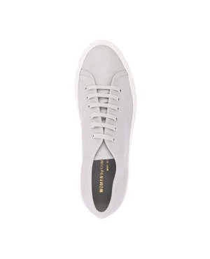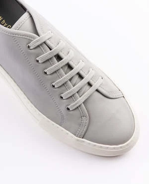 Tournament Low Super Sneakers in grey Common Projects. Featuring a round toe, a lace-up front fastening, a flatform sole and a gold-tone number stamp to the outside.