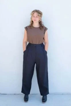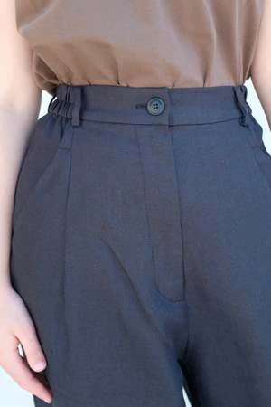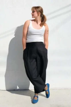 Cut for a loose fit, these linen pants are tailored with front pleats and side slip pockets. The elasticated waistband ends up in the front-laterals to add comfort and give the piece a relaxed yet elevated look.