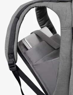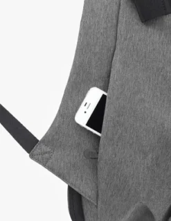 The Isar Medium Rucksack by Cte & Ciel is a backpack with an eccentric design. It’s design is both beautifully modern and alien as it is functional, the Eco Yarn fabric makes the rucksack weatherproof. It consists of a front compartment with a pocket and compression straps. The Separate back compartment has a padded laptop pocket that protects 15″ devices and mesh pockets. The metallic trims and black leather details on the handle and frame add tactile comfort. It comes in a Black Melange.