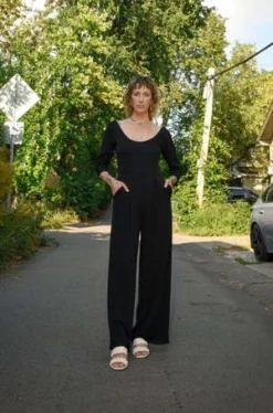 Dagg & Stacey’s Cecilia Jumpsuit is the ultra comfy, ultra chic jumpsuit of our dreams! Featuring a deep scoop neck, 3 / 4 sleeves, and of course.. pockets! We love how the fabric drapes down the legs with its subtle pleats and wide leg. You can easily take this jumpsuit from day to night with the swap of a shoe!