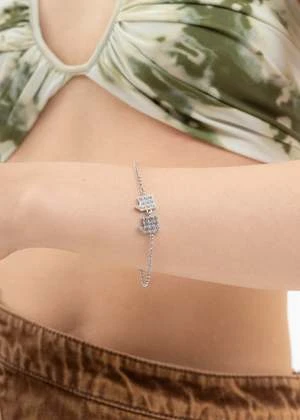 Biaovai bracelet in silver-tone, from DEPARTMENT. Features a delicate silver-tone rolo-link chain with tonal crystal-detailed pendants centered along the length of the bracelet. Finished with a lobster-claw fastening mechanism.