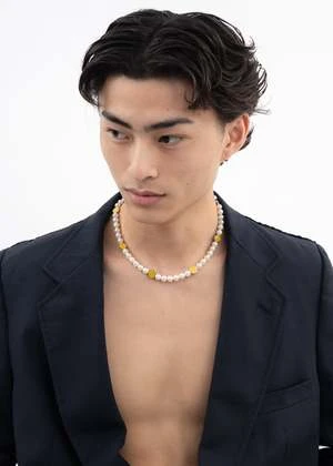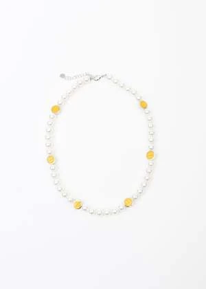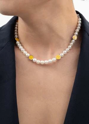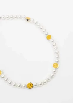DEPARTMENTUnisex DEPARTMENT Yellow Smily Faces And Pearls Necklace – Silver