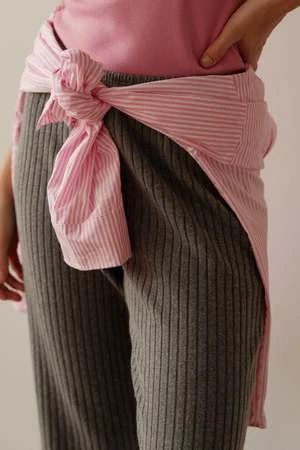 The Sweater Rib Simple Pant is crafted from a super-soft sweater rib fabric, featuring a wide leg fit, elastic waistband and ribbed texture.