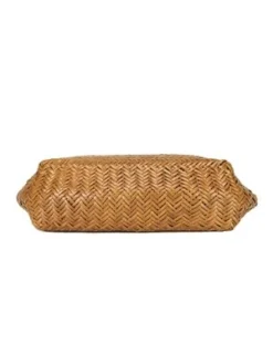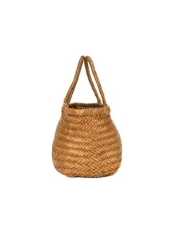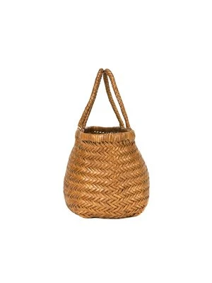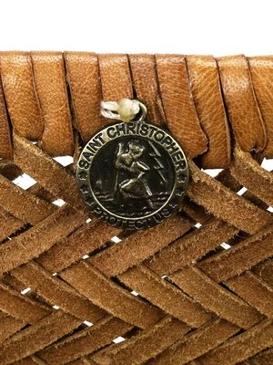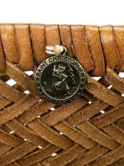 Dragon Diffusion reworks the basket bag, a style that originated in Ancient Egypt, in tightly woven leather for a sturdy construction. It’s been individually crafted in India to an open top silhouette that has an antiqued Saint Christopher charm secured to the interior, the patron saint of travel, health and well-being. Style it with neutral tones for a warm-weather feel.
