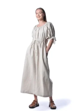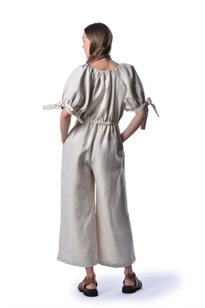 We wanted to make a jumpsuit that was not only practical, but also whimsical, light, and romantic too. The Ramona jumpsuit is what was born and it’s all those things and more. The Ramona has an elasticized neckline, a button front closure, and mid length puff sleeves with adjustable bow ties. It has an adjustable drawstring at the waist and can be worn loose or cinched in. With super wide legs and deep side pockets you’ll want to wear this everyday!