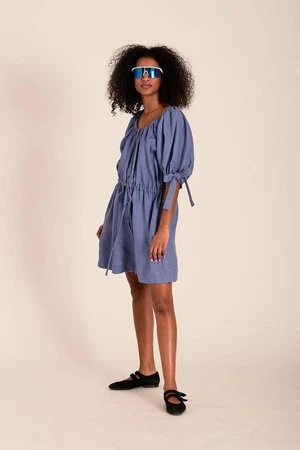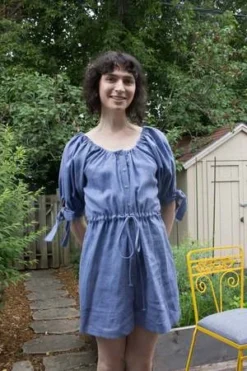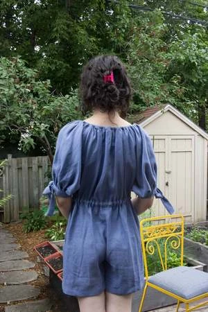 Eliza Faulkner’s linen playsuit is one that you’ll never want to take off! Made out of 100% Oeko-Tex certified linen, this oversized romper has an elasticized neckline, a button front closure, and mid length puff sleeves with adjustable bow ties. It has an adjustable drawstring at the waist and can be worn loose or cinched in. With super wide legs and deep side pockets you’ll want to wear this everyday!
