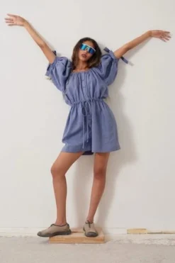 Sizing Notes: This playsuit has a very oversized and relaxed fit. You can cinch the waist tie in to make it the perfect fit for you. If you’re between sizes, we suggest going down a size.