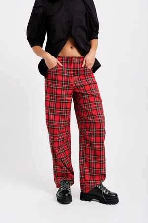 Our Sam Pant offers the timeless appeal of classic red plaid, with a low rise fit and baggy silhouette. The Sam pant fits true to size.