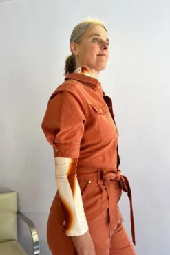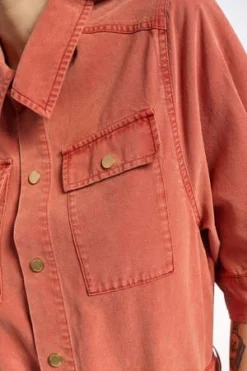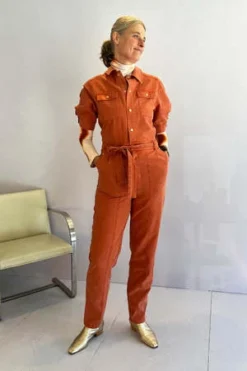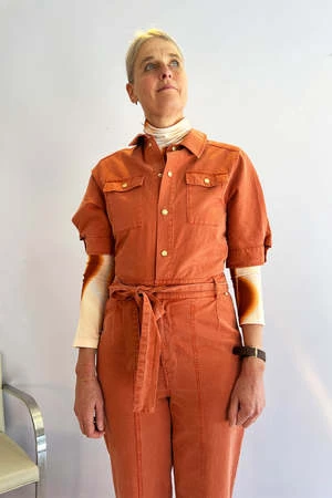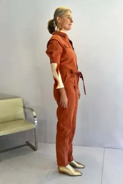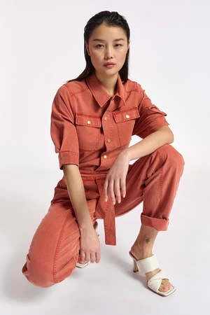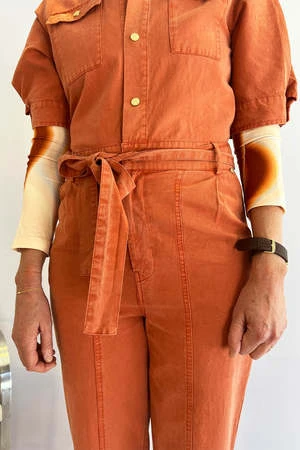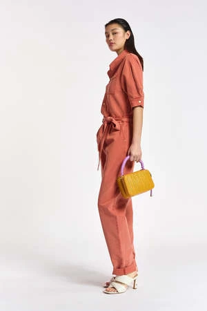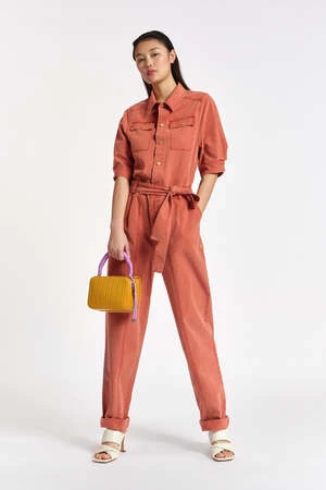 Soft and lightweight eco-responsibly produced denim jumpsuit is an effortless and versatile take on utilitarian styles. The relaxed bodice, self-fabric belt at the waist and slightly tapered legs enhance the flattering fit.