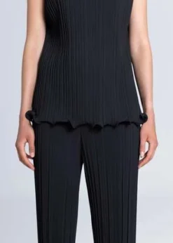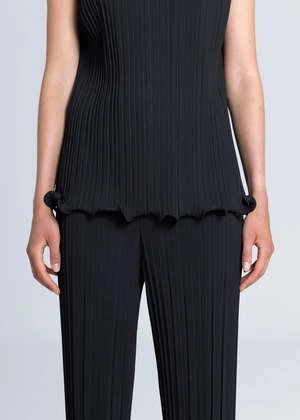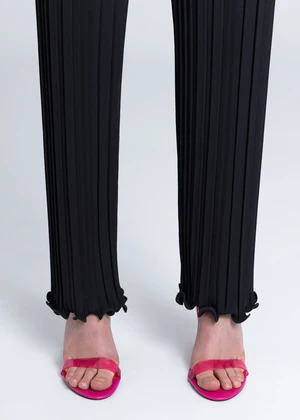EsthéPleated Straight Leg Scallop Edge Trousers – Black