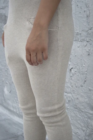 sleeveless cotton jumpsuit made of unbleached and undyed Pima cotton yarn.
