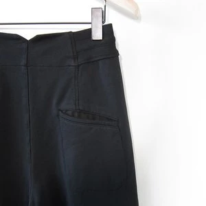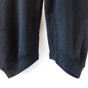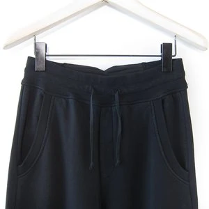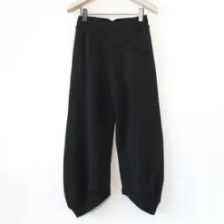 Wide leg pull-on french terry pant with drawstring waistband, faux fly detail, asymmetric hem with rib knit inserts, front slash pockets, and single back welt pocket. Machine washable.