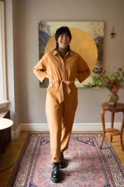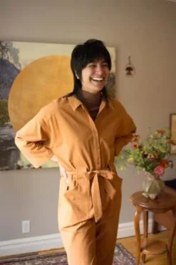 Eve Gravel’s Octave Jumpsuit is comfortable and cool. Inspired by a mechanic’s jumpsuit, the Octave has a relaxed fit with long sleeves, dropped shoulders and straight legs. The belt and front buttons means you can make this as sexy or as functional as you like. Wear it to work done up all the way, then rock unbuttoned over a tank for drinks with friends.
