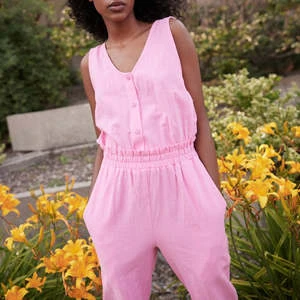 Jumpsuit in 100% OEKO TEX cotton fabric.