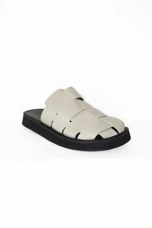 Interwoven closed-toe mule crafted in Spanish smooth calf leather.
